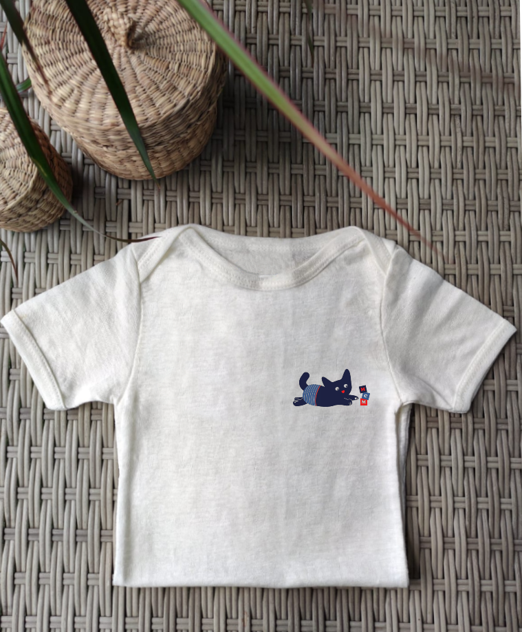 Impression certifiée Oeko-tex (substances non nocives) pour le respect de la peau de l’enfant.